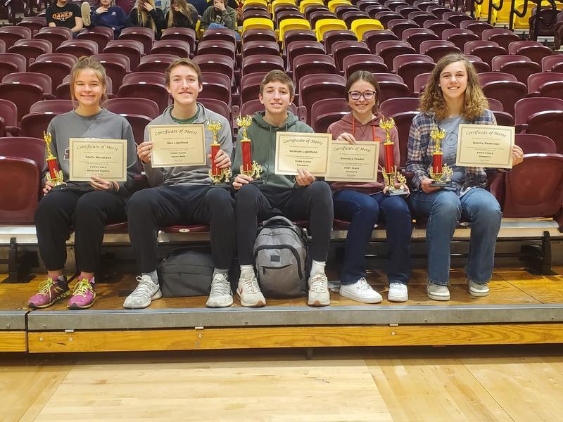 Milbank had a great day at the Northern State University Math Contest on Wednesday, April 19th. We had 11 students receive honorable mention and 5 students place in the top 5! The top 5 places in each category receive a trophy and the overall category winner also gets a new graphing calculator. We do not have results for the place of the entire team yet. Milbank won the A – division last year and we are hoping to repeat again this year! We will find out in a few days! - Mrs. Graf