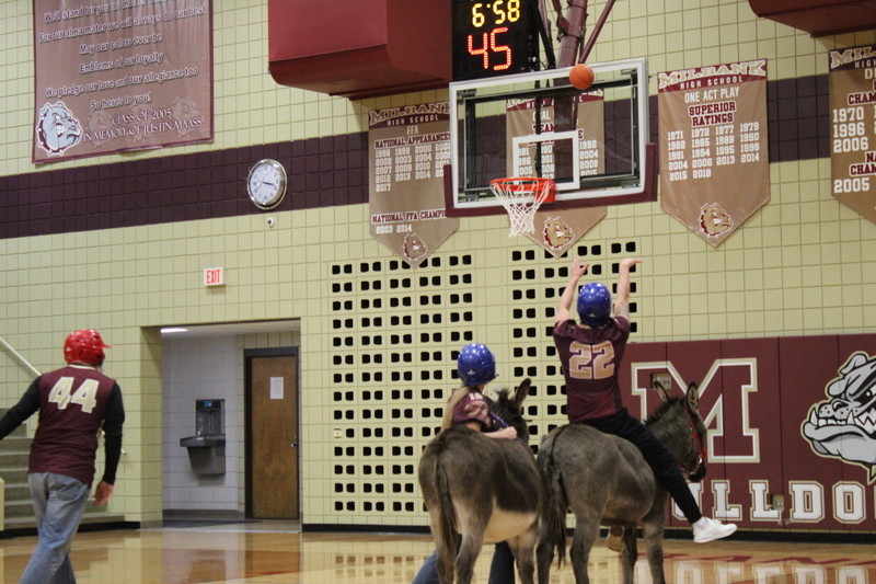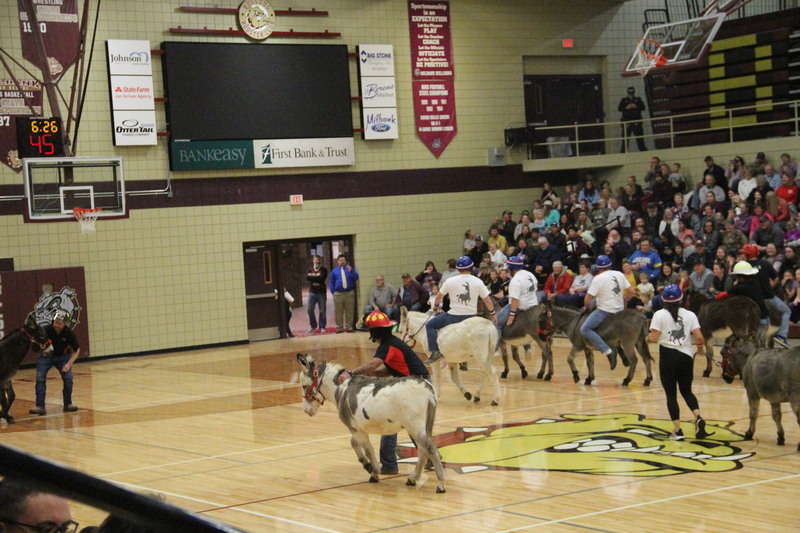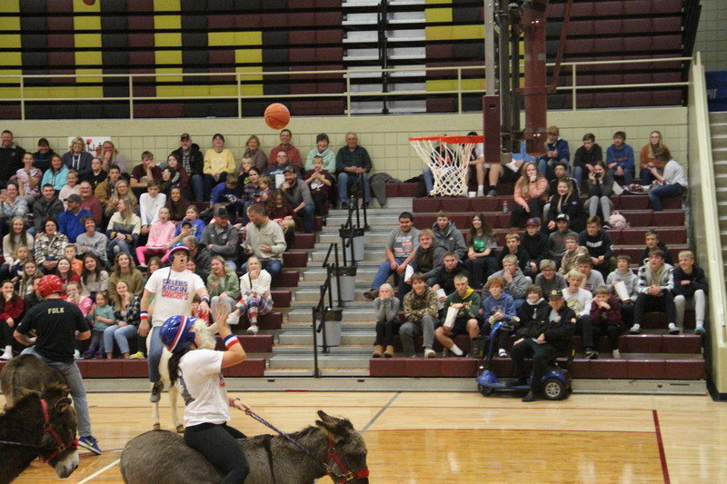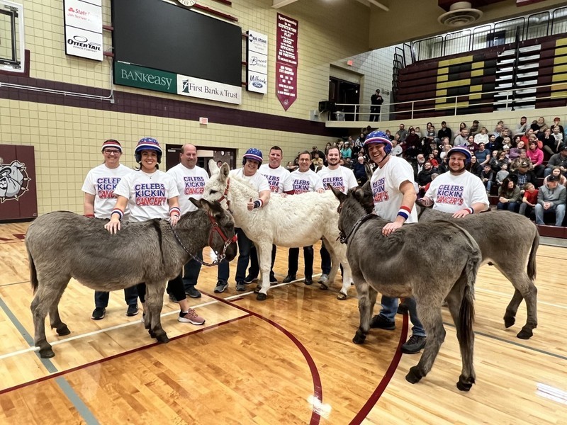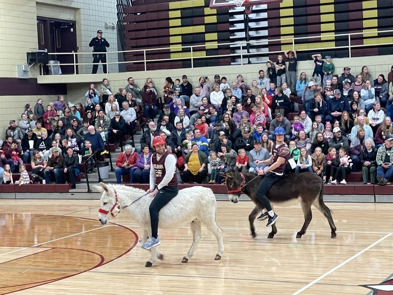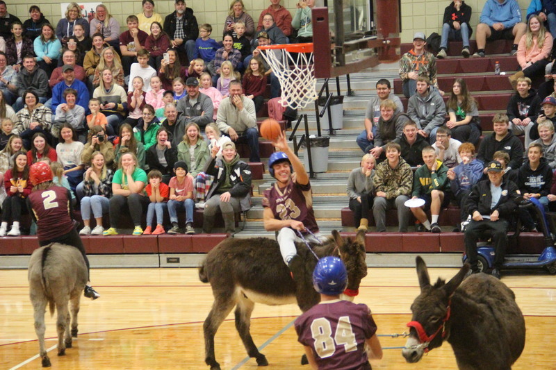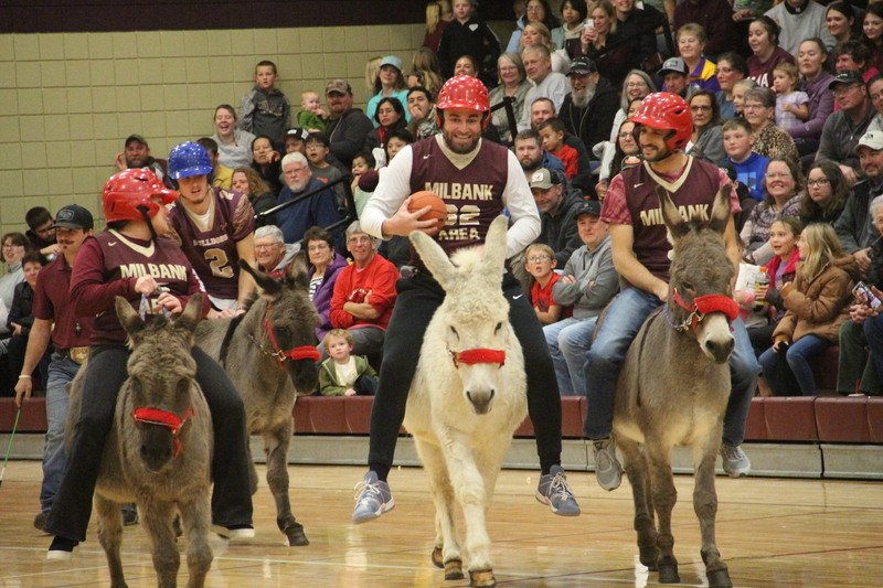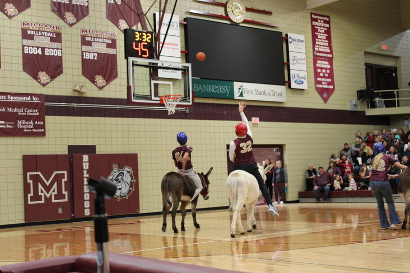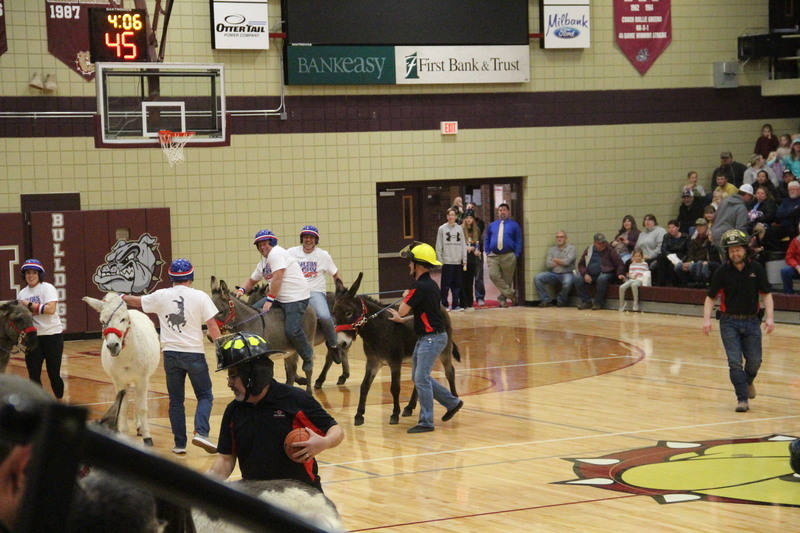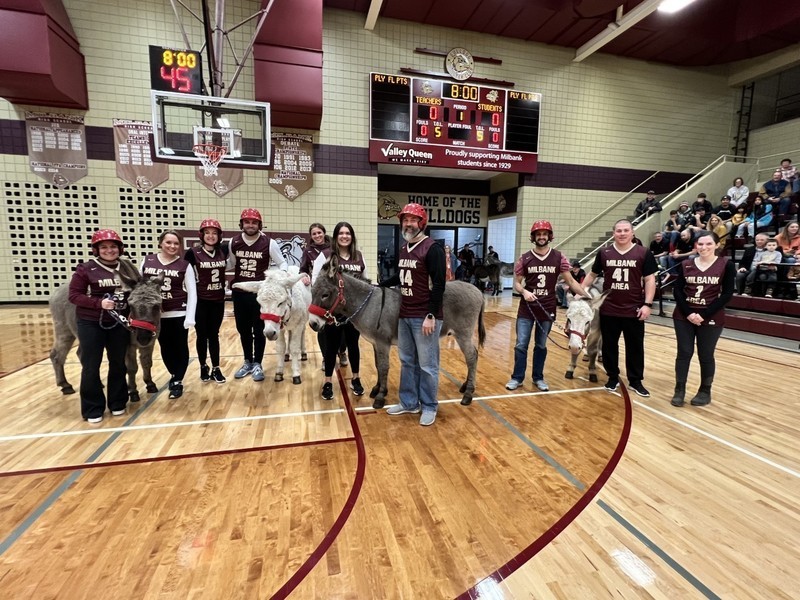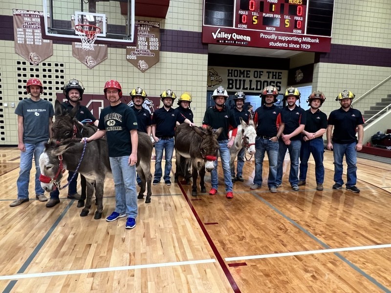 Donkey Basketball 2022 was brought to you by Bulldogs Fighting Cancer as a fundraiser for the local "It Only Takes A Spark Cancer Walk". Four teams of players were made up of Milbank students, Milbank School District staff, Hometown Heroes, and Milbank Celebrities. The Milbank Students were the Champions of the night defeating the Celebrities in the championship game. The gym was packed full with fans, and it was a great/fun event for a great cause!